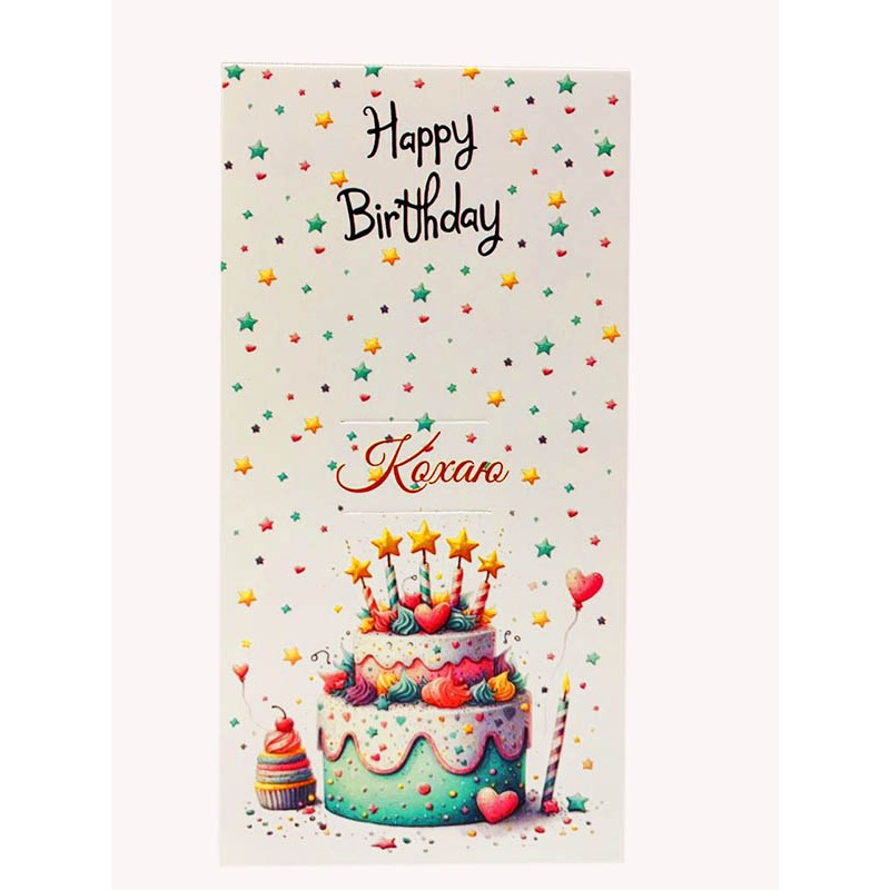 Листівка "Happy birthday - Кохаю".Розмір:висота - 17,5 смширина - 8,5 смКількість - 1 шт., продається...