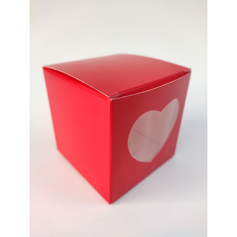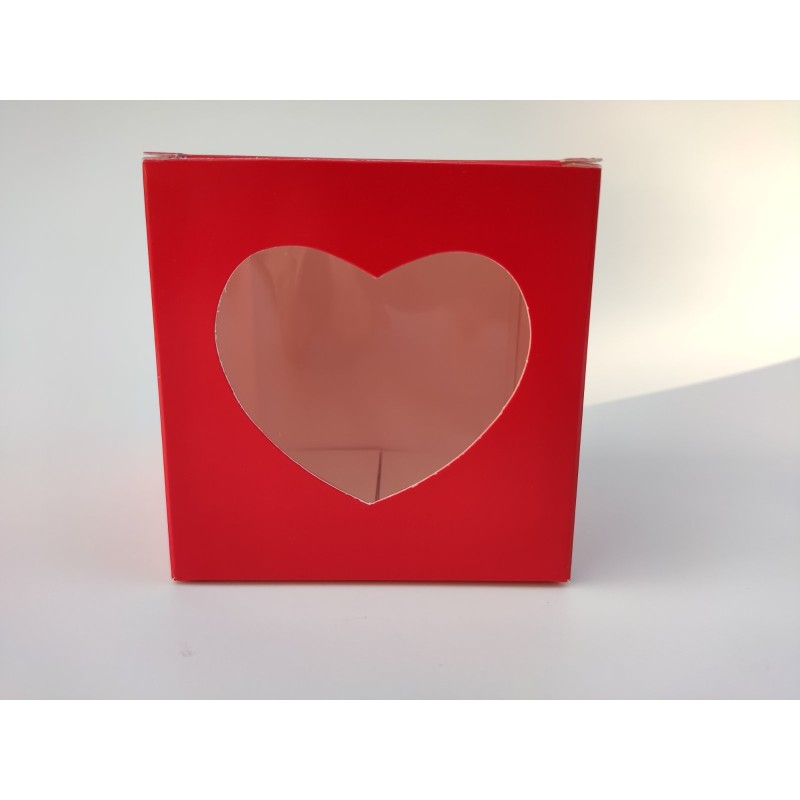 Коробка на 1 капкейк "Червона" з віконцем - серцем.Святкова цільна коробочка з вікном - плівкою у вигляді серця...
