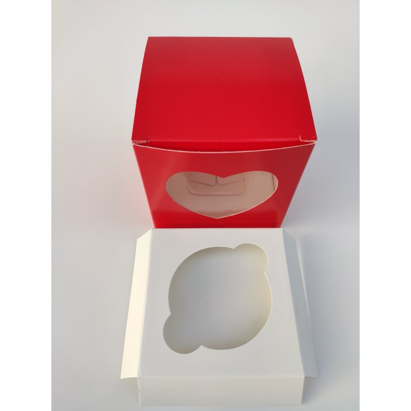 Коробка на 1 капкейк "Червона" з віконцем - серцем.