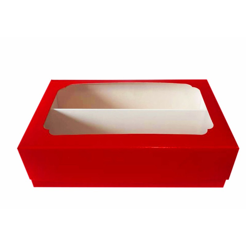 Коробка "Червона" для макаронс з вікном та перегородкою.