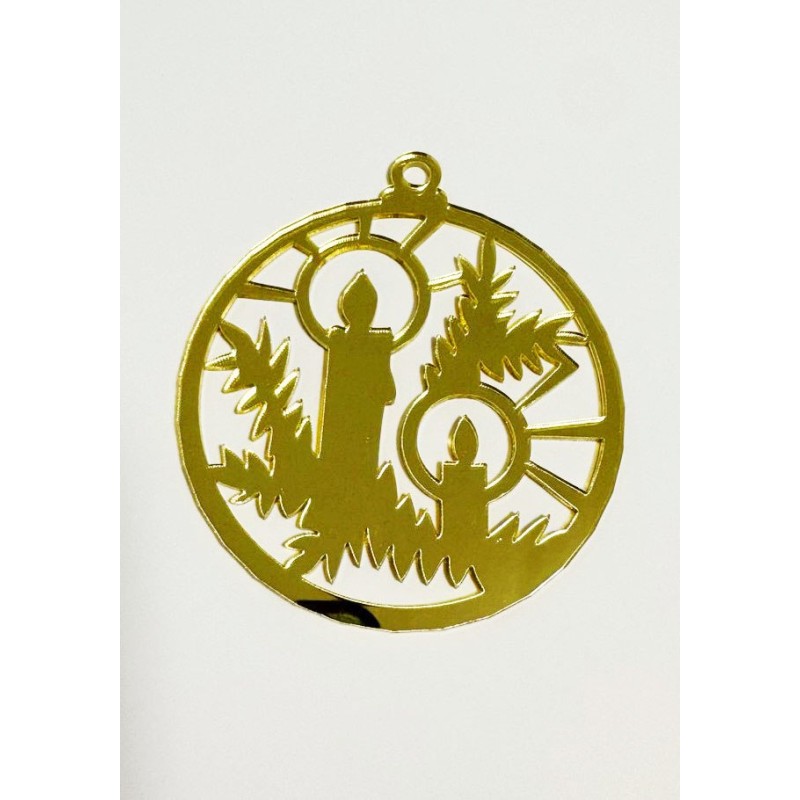 Золота акрилова прикраса на ялинку "Різдвяні свічки".