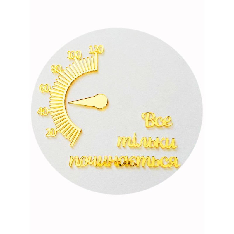 Топпер акриловий золотий "Все тільки починається". Топер складається з п'яти частин. Шкала регулюється під ваше...