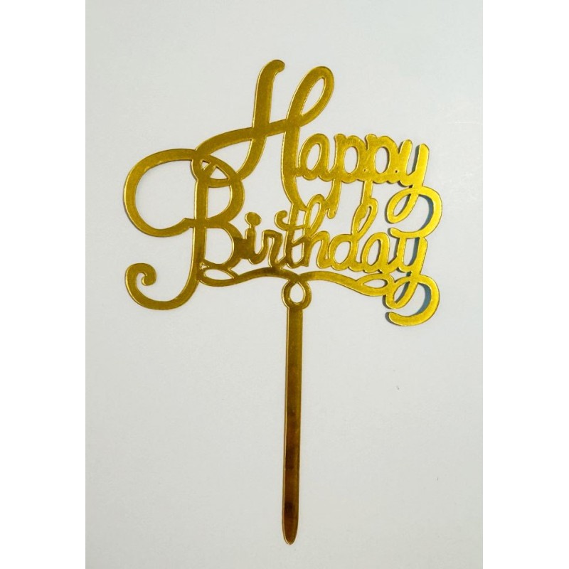 Топпер "Happy birthday” №23 золото, акриловий пластик.