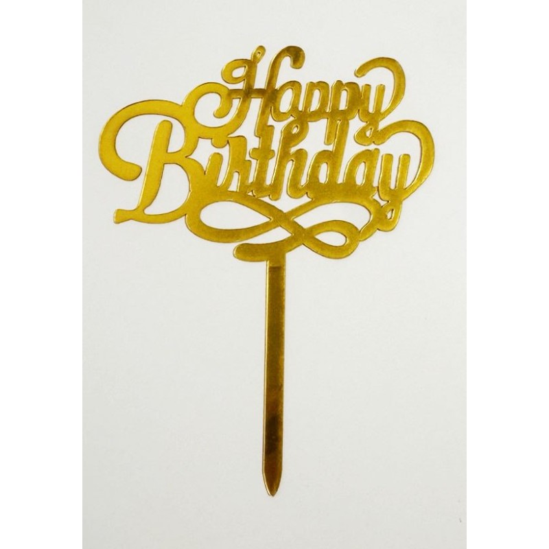 Топпер "Happy birthday” №24 золото, акриловий пластик.