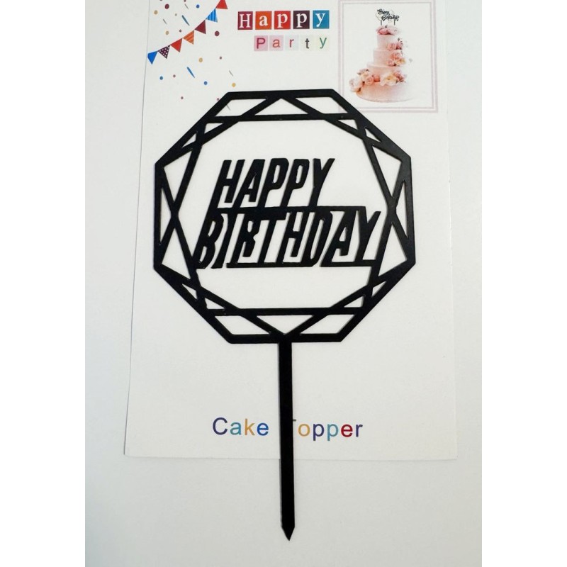 Топпер "Happy birthday” Багатогранний чорний, акриловий пластик.
