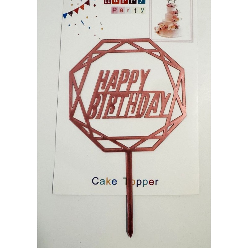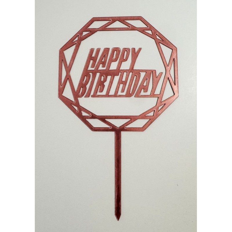 Топпер "Happy birthday” Багатогранний рожевий, акриловий пластик.