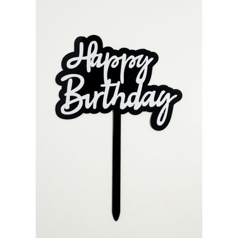 Топпер "Happy birthday” чорно-білий, акриловий пластик.