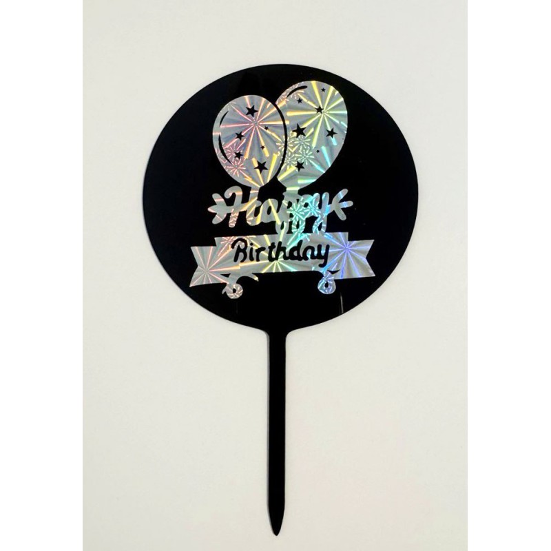 Топпер "Happy birthday” чорний градієнт, акриловий пластик.