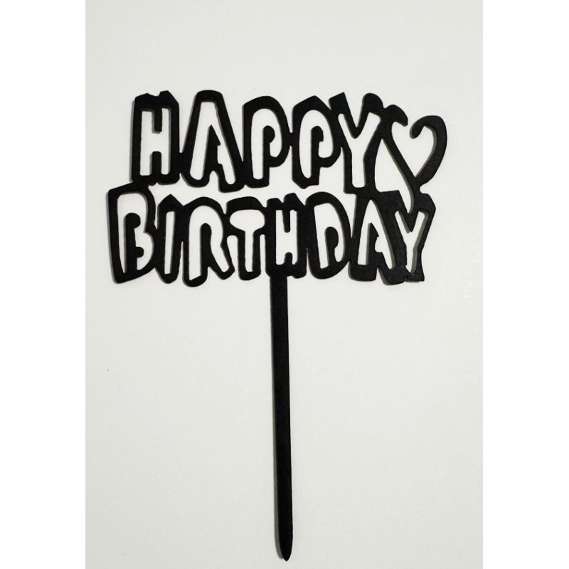 Топпер "Happy birthday” Чорний з серцем, акриловий пластик.