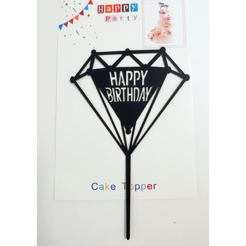 Топпер "Happy birthday” Діамант чорний, акриловий пластик.