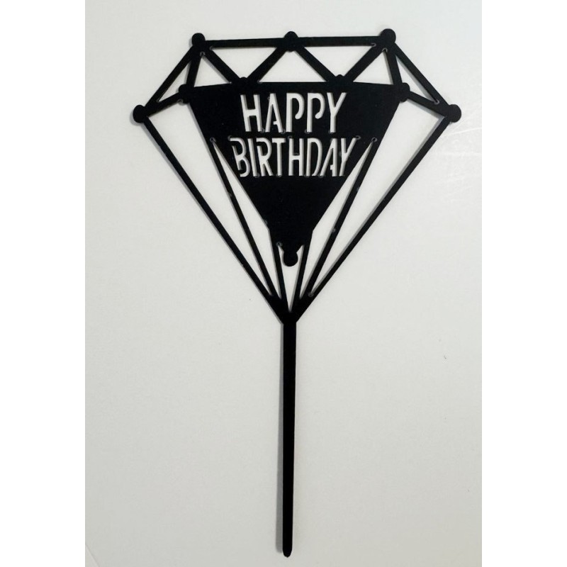 Топпер "Happy birthday” Діамант чорний, акриловий пластик. Розмір - 11 х 17 см...