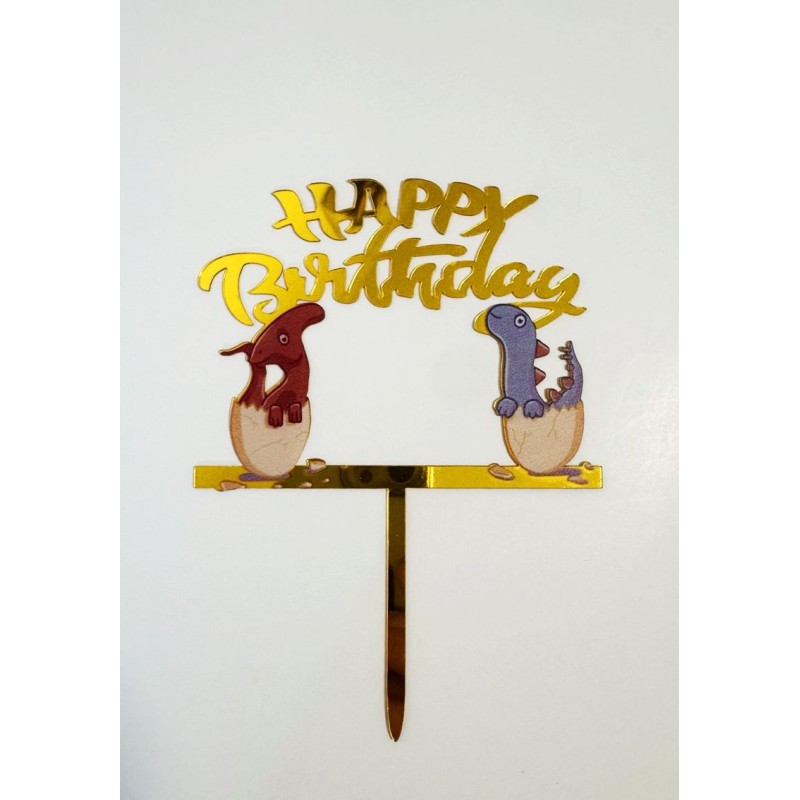 Топпер "Happy birthday” Динозаврики, акриловий пластик.