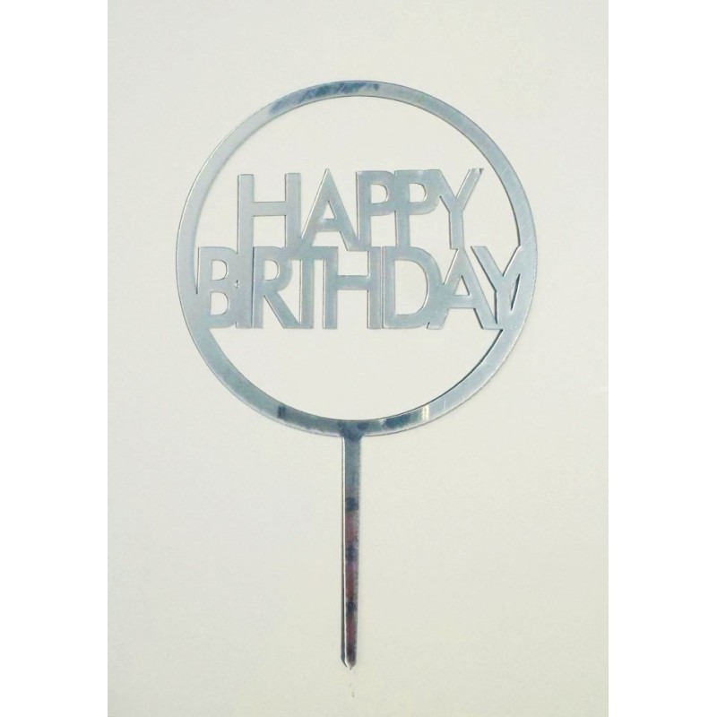 Топпер "Happy birthday” коло срібло, акриловий пластик.