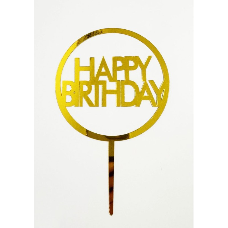 Топпер "Happy birthday” коло золото, акриловий пластик.