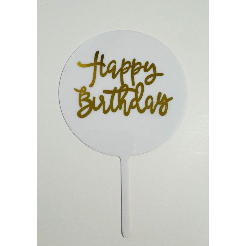 Топпер "Happy birthday” круглий, білий, акриловий пластик.