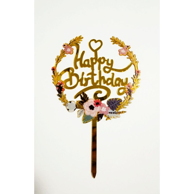 Топпер "Happy birthday” квітковий №1, акриловий пластик.