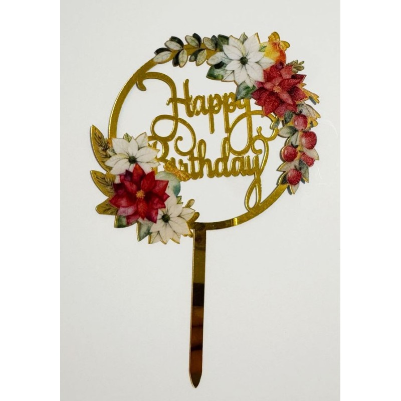 Топпер "Happy birthday” квітковий №6, акриловий пластик.