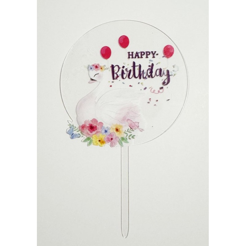 Топпер "Happy birthday” Лебідь прозорий, акриловий пластик.