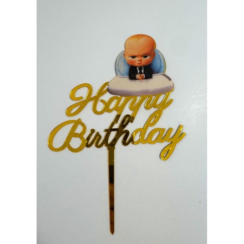 Топпер "Happy birthday” Маленький бос, акриловий пластик.