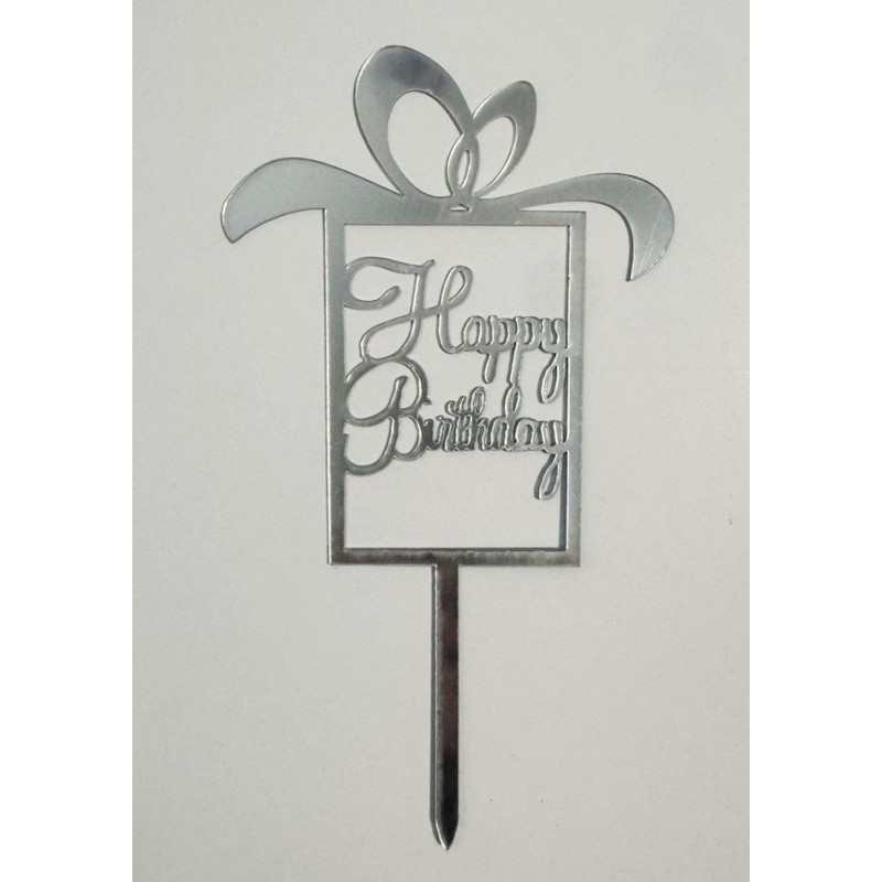 Топпер "Happy birthday” Подарунок срібло, акриловий пластик.