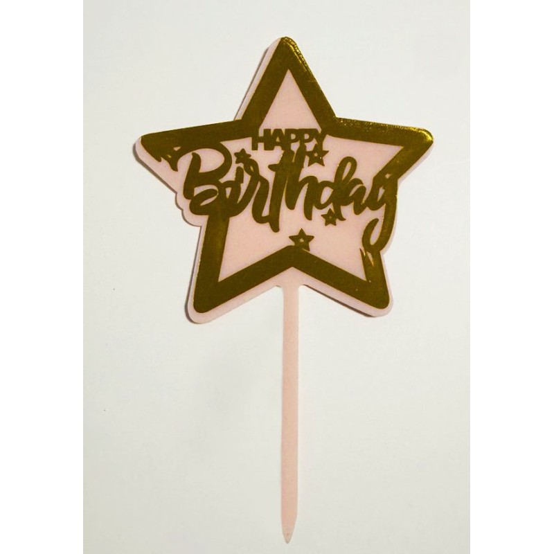 Топпер "Happy birthday” Рожева зірка, акриловий пластик.