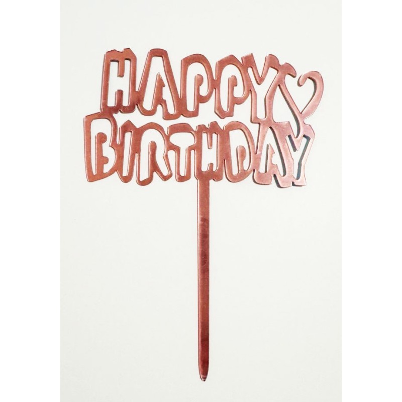 Топпер "Happy birthday” Рожевий з серцем, акриловий пластик.