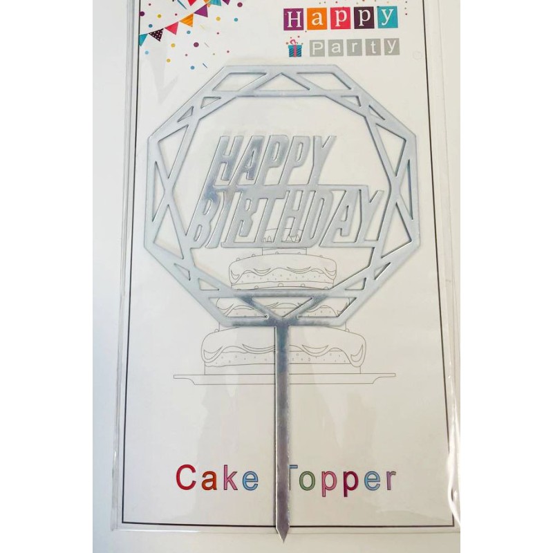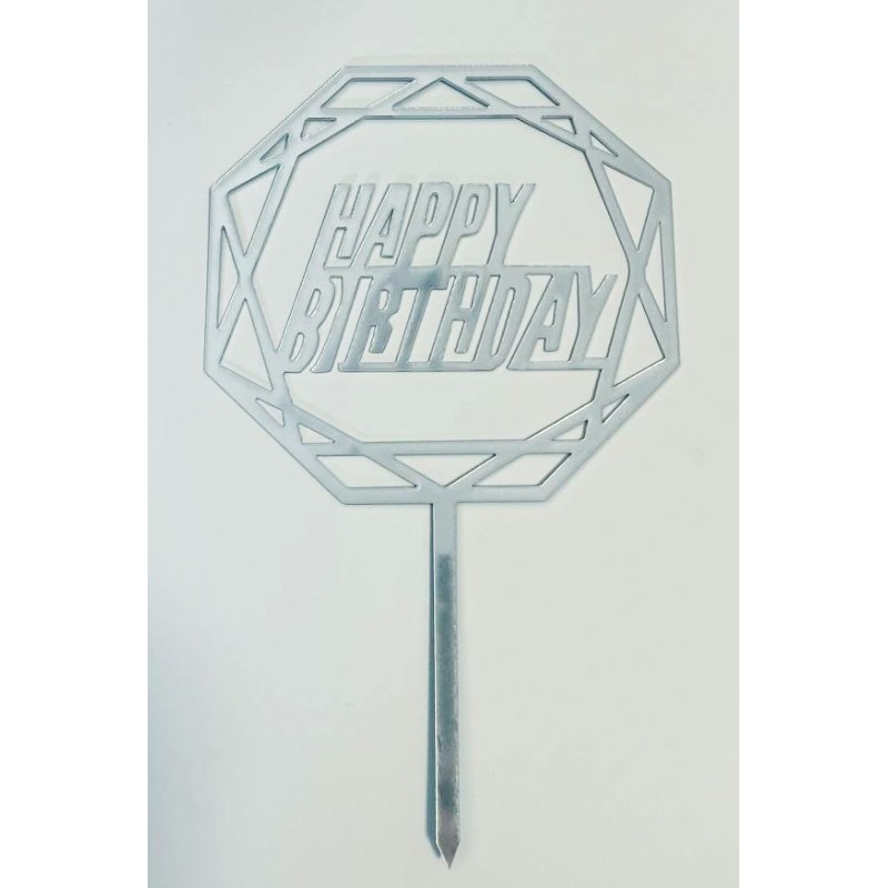 Топпер "Happy birthday” срібний багатогранник, акриловий пластик.