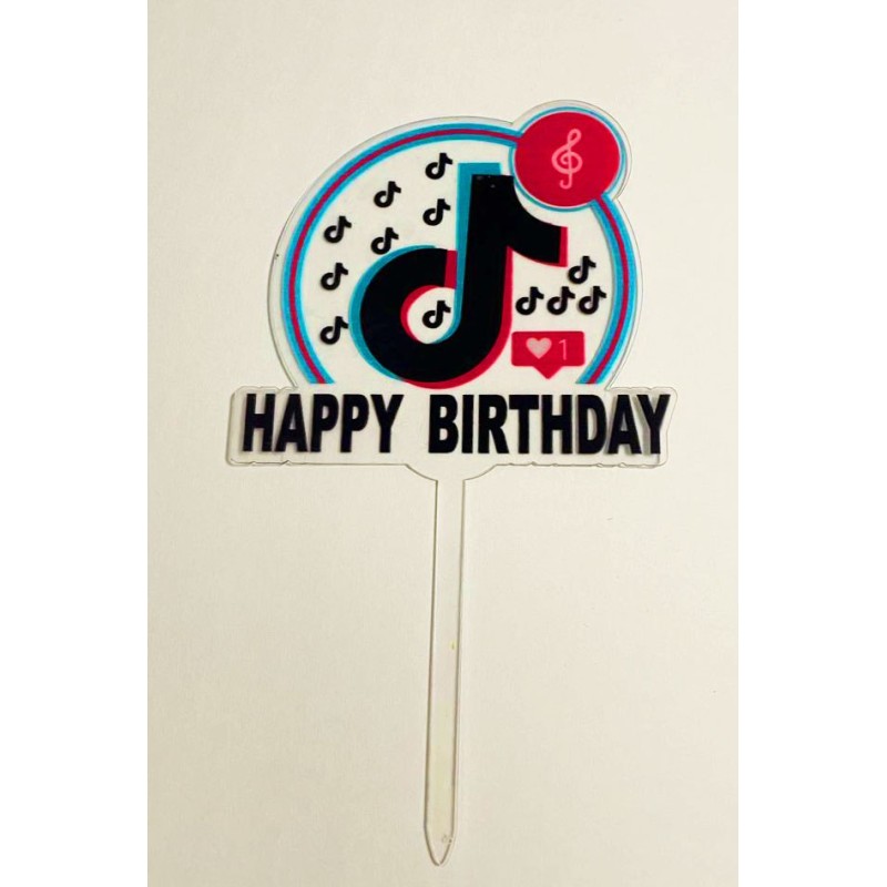 Топпер "Happy birthday” TikTok #3 прозорий, акриловий пластик. Розмір - 11 х 16 см...