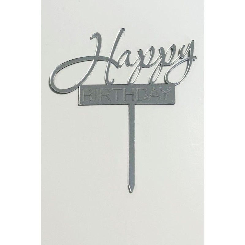 Топпер "Happy birthday” з срібного акрилу 2 мм.