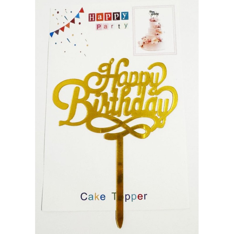 Топпер "Happy birthday” золото вензель, акриловий пластик.