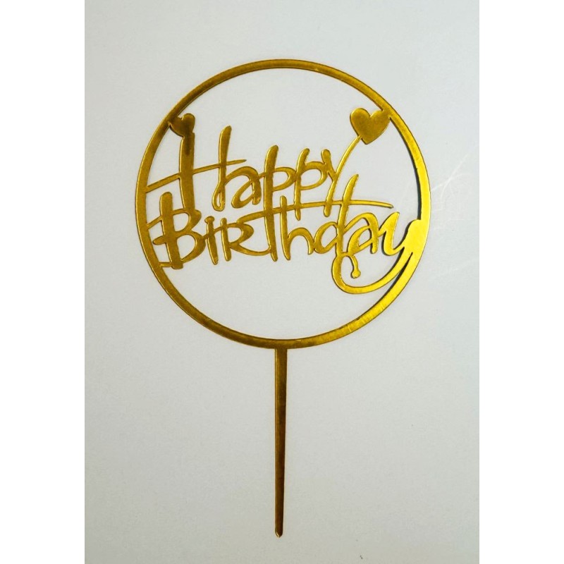 Топпер "Happy birthday” Золотий круг з сердечками, акриловий пластик.
