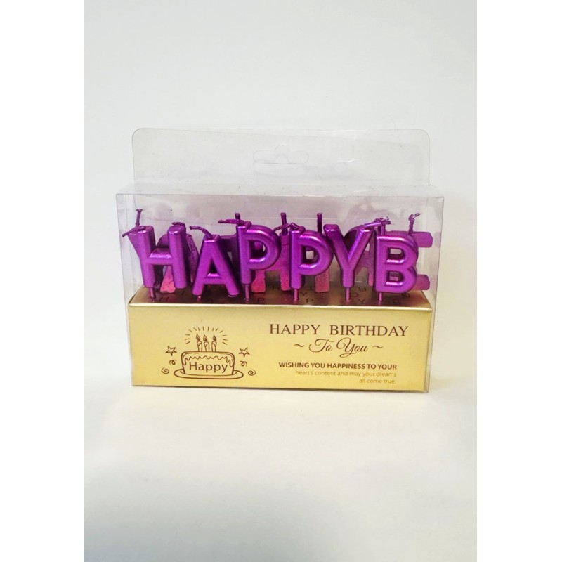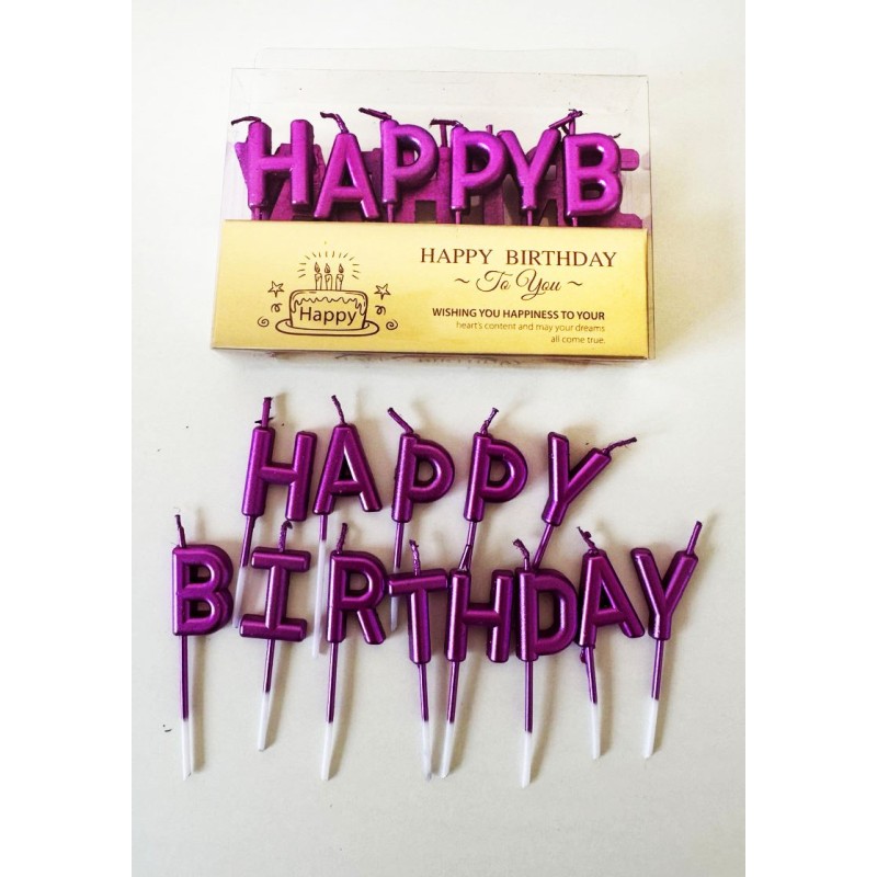 Свічки для торту "Happy Birthday" фуксія.